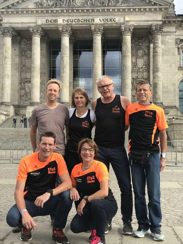 Aus Rheine und Umgebung nahmen eine Vielzahl von Laufsportlern teil. Neben Läufern des SVA Salzbergen, der LG Elte und des SC Altenrheine starteten auch 6 Läufer vom ETuS Rheine. Das intensive Training der vergangenen Wochen hat sich bei allen Teilnehmern ausgezahlt. Michael Havers beendete das Rennen als erster ETuS-Läufer bereist nach 3:49 h. Jürgen Koops ging den Marathon sehr routiniert an und überquerte die Ziellinie nach 3:58 h. Maria Hilmes lief ein sehr konstantes Rennen und absolvierte die Marathon-Distanz in 4:15 h. Regina von der Straten folgte ihr nach 4:29 h ins Ziel. Beide Läuferinnen konnten dabei neue persönliche Bestzeiten aufstellen. Matthias Deitmer und Thomas von der Straten gingen das Rennen ruhig an und genossen die großartige Stimmung der Veranstaltung. Nach 4:51 h kamen beide gemeinsam ins Ziel. Alle Teilnehmer waren sich einig – Berlin ist immer eine Reise wert.