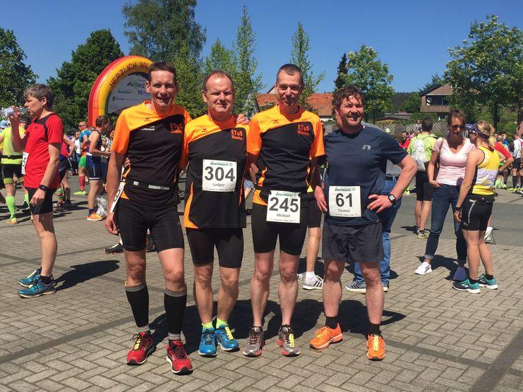 Waldemar Bensch überquerte als erster ETuS-Läufer nach 47:08 Min. die Ziellinie. Andreas Reiners kam mit einer Zeit von 51:36 Min. ins Ziel und erreichte damit den 2. Platz in seiner Altersklasse. Alle weiteren ETuS-Läufer hatten sich für die Halbmarathon-Distanz entschieden und liefen ihr Rennen routiniert ab. Klaus Brinkmann überquerte nach 1:46:25 h die Ziellinie im Stadion und war mit seiner Leistung sichtlich zufrieden. Kurz danach kamen auch Hartmut Gottensträter mit 1:47:10 h und Ralf Gude (LG Elte) mit 1:48:25 h ins Ziel. Mit diesen Ergebnissen haben alle teilnehmenden Sportler ihre gute Trainingsverfassung unter Beweis gestellt.