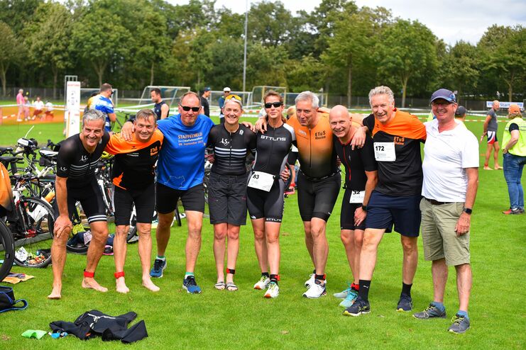 Erstmals gingen in diesem Jahr ETuS-Sportler auch beim Staffeltriathlon an den Start. Das Schwimmen absolvierte Manfred Paege in 13:37. Harald Beernink beendete das Radfahren nach 43:31 und Thomas Visse lief nach 28:06 ins Ziel. Die Staffel beendete den Triathlon nach 1:25:14. Die restlichen ETuS–Triathleten