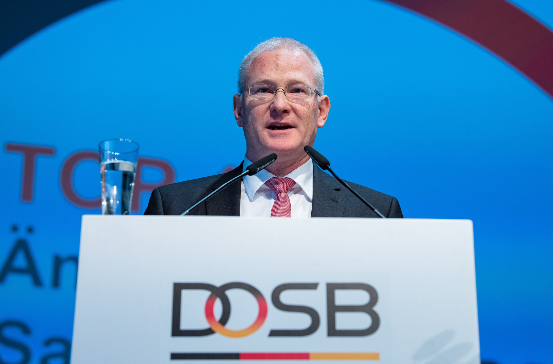 Thomas Arnold ist am Hauptsitz des Deutschen Olympischen Sportbundes (DOSB) an der Frankfurter Otto-Fleck-Schneise der Dinosaurier. Seit er 1994 als persönlicher Referent des damaligen Präsidenten Walther Tröger in das Nationale Olympische Komitee (NOK) einscherte, arbeitet der 58-Jährige für den deutschen Sport. Der Rheinländer, geboren in Bonn, erlebte die Fusion von NOK und Deutschem Sportbund (DSB) zum DOSB im Mai 2006 als Abteilungsleiter Finanzen des NOK, wurde danach Direktor für Finanzen und ist seit 2014 Vorstand Finanzen. Zum Start unserer Serie „20 Jahre DOSB“, in der wir bis zum Tag des 20-jährigen Bestehens am 20. Mai jede Woche ein Thema aus der DOSB-Historie beleuchten, spricht Thomas Arnold über seine Erinnerungen an die vergangenen 20 Jahre.