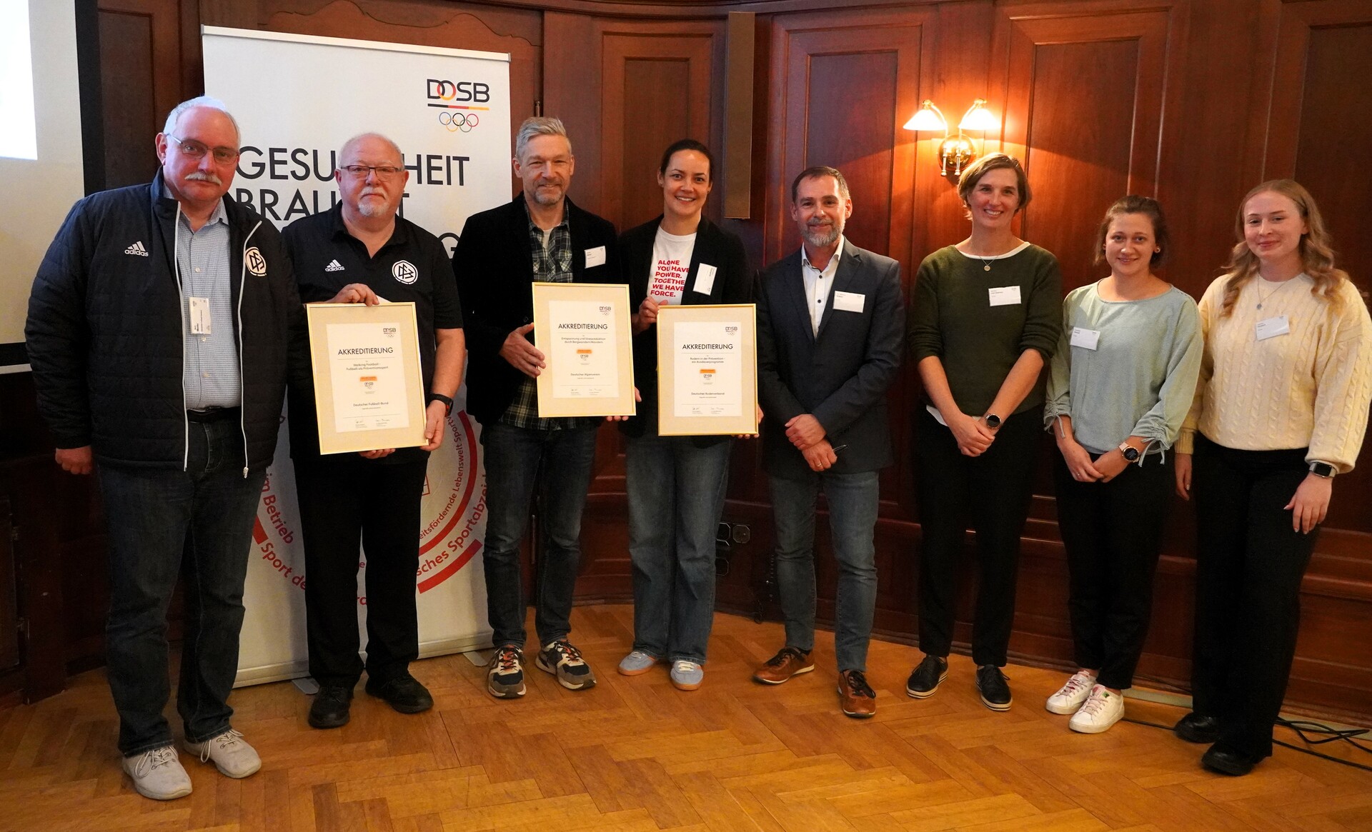 Dr. Mischa Kläber, Ressortleiter Breiten- und Gesundheitssport sagt im Rahmen der Verleihung: „Ich freue mich sehr über das Engagement der drei Verbände im Gesundheitssport. Mit den neu entwickelten und wissenschaftlich begutachteten Konzepten wird einmal mehr deutlich, dass Prävention mit Sportartenbezug einen wichtigen Beitrag leistet, Menschen zum Sporttreiben zu motivieren!“