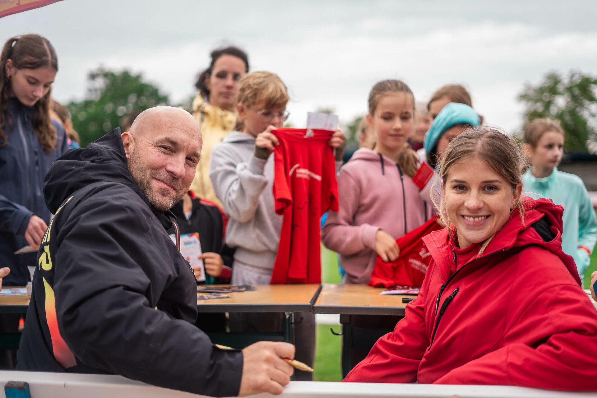 Durchs Programm führten zwei Moderatoren mit Herz. An der Seite von DOSB-Moderator Dennie Klose stand Tobias Borchers, der in der Region als Schauspieler und Moderator beliebt und bekannt ist und sich bestens auskennt. Dennie Klose hätte sich zwar ein bisschen mehr Sonne gewünscht, genoss dennoch die tolle Stimmung: „Dieser Tourstopp ist ein würdiger Abschluss einer tollen Sportabzeichen-Tour. Wir sehen hier, wie alle gemeinsam Spaß haben und sich ihren Herausforderungen stellen. Und mein persönliches Highlight sind die glücklichen Augen der Kinder.” Tobias Borchers ergänzt: “Brandenburg zeigt sich hier von seiner besten Seite mit großartigen Angeboten. Die Kinder sind glücklich, den Sportbotschafter*innen Busemann, Seitz und Mester so nahe zu kommen, überall wird Sport gemacht - was will man denn mehr?”